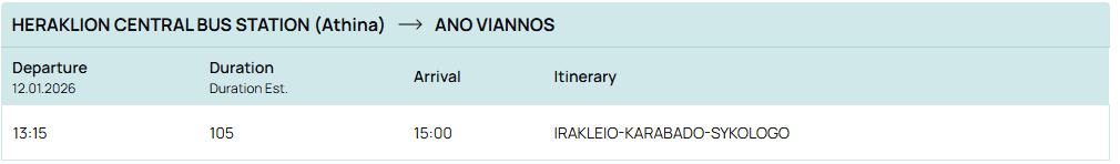Buses run once a day from HERAKLION CENTRAL BUS STATION (Athina)to ANO VIANNOS; see the schedule here https://www.ktelherlas.gr/en